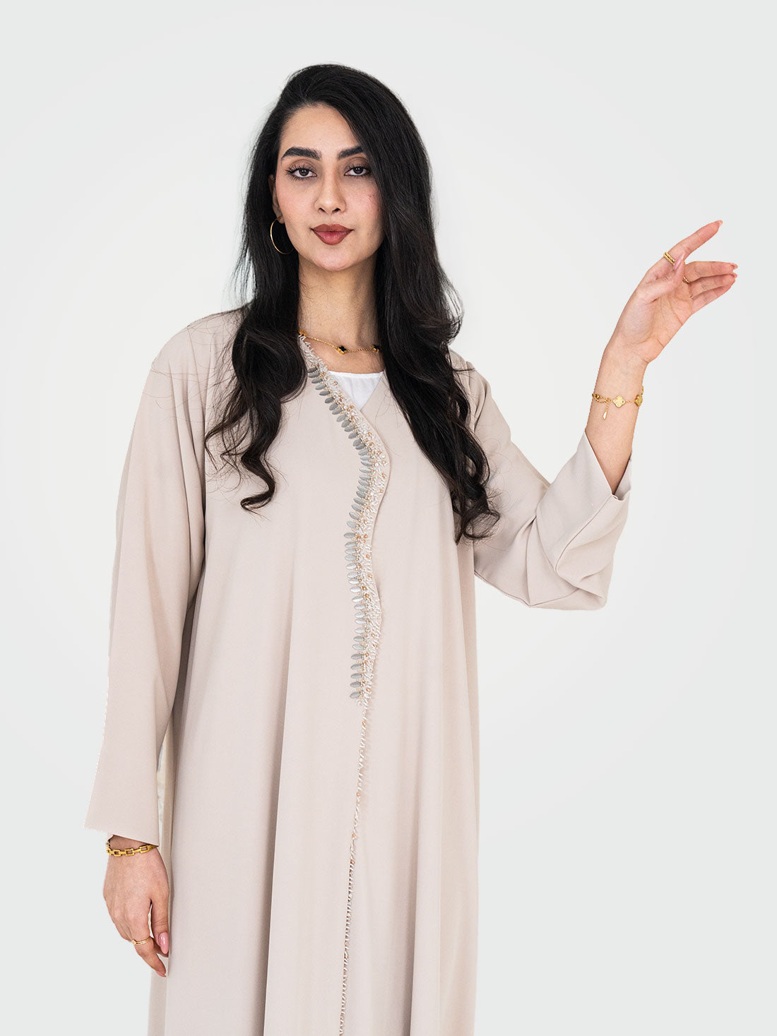 The Pearl Dune Abaya by Layaal Abaya Studio is a luxury handcrafted abaya made in...