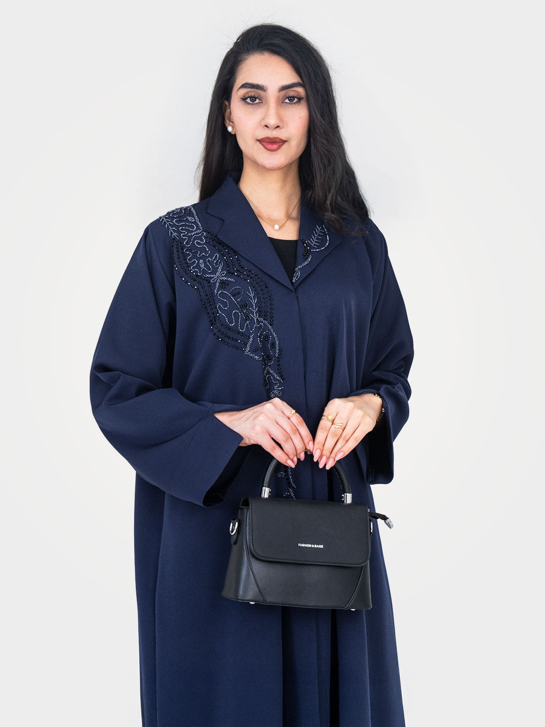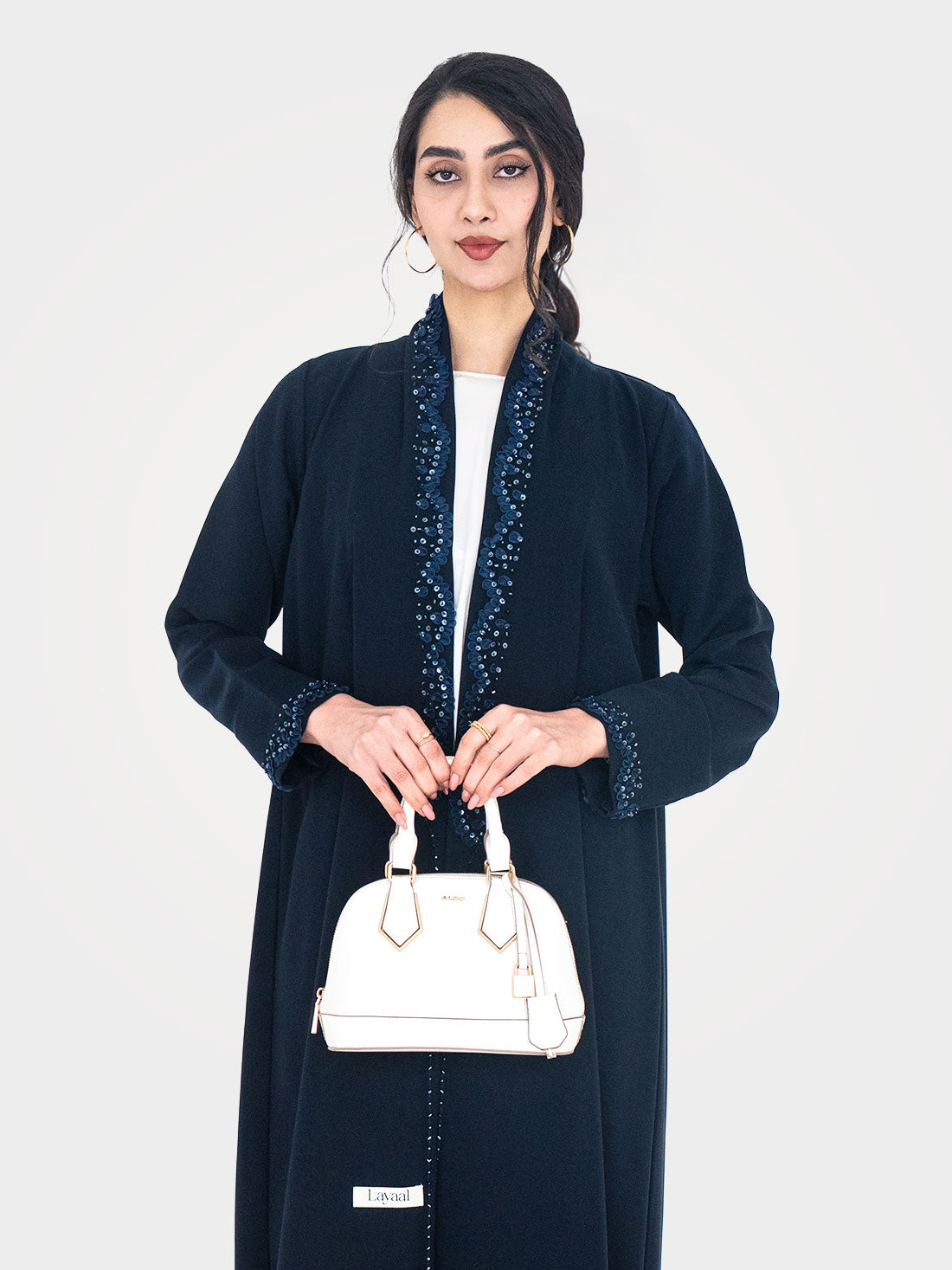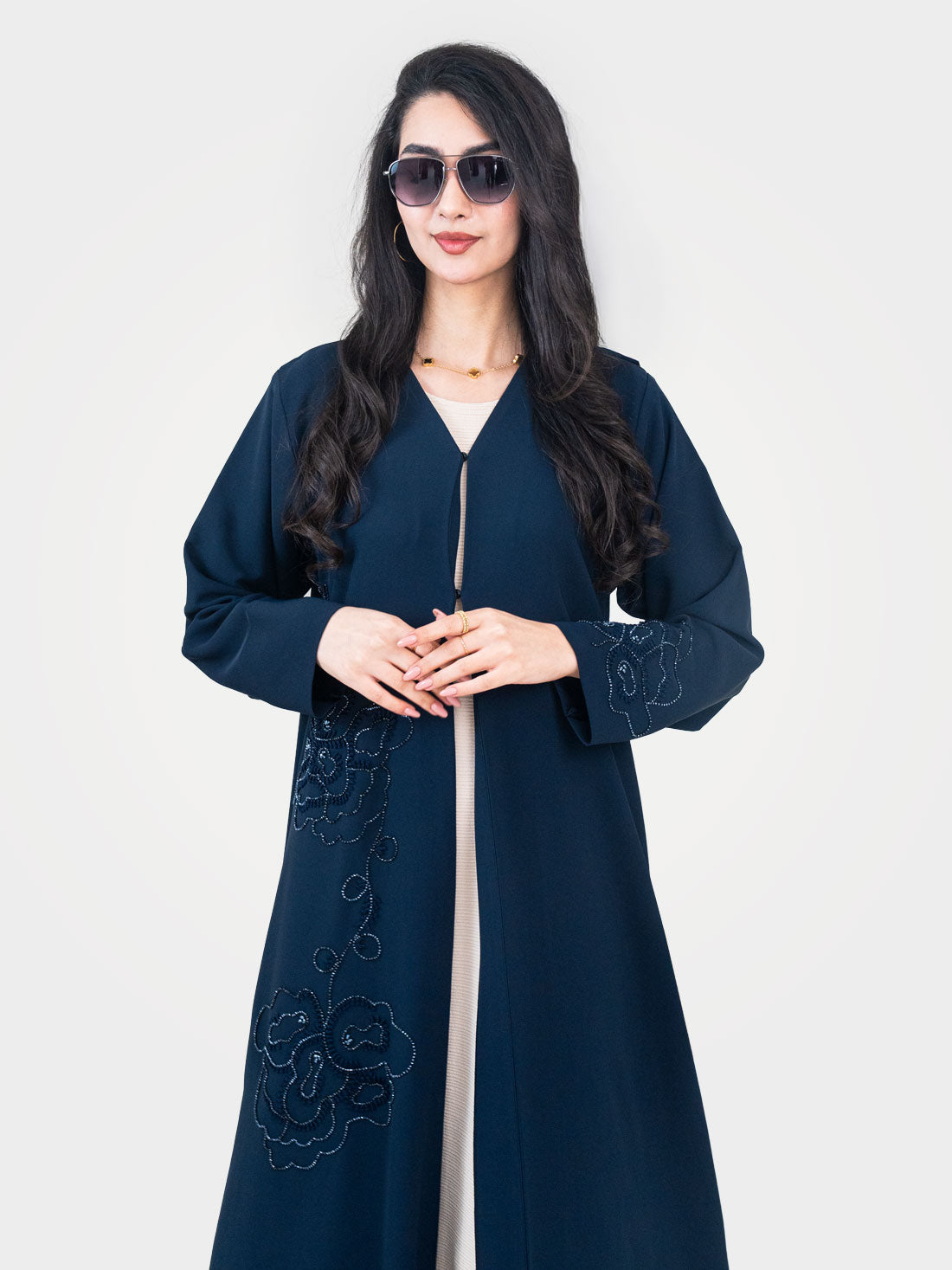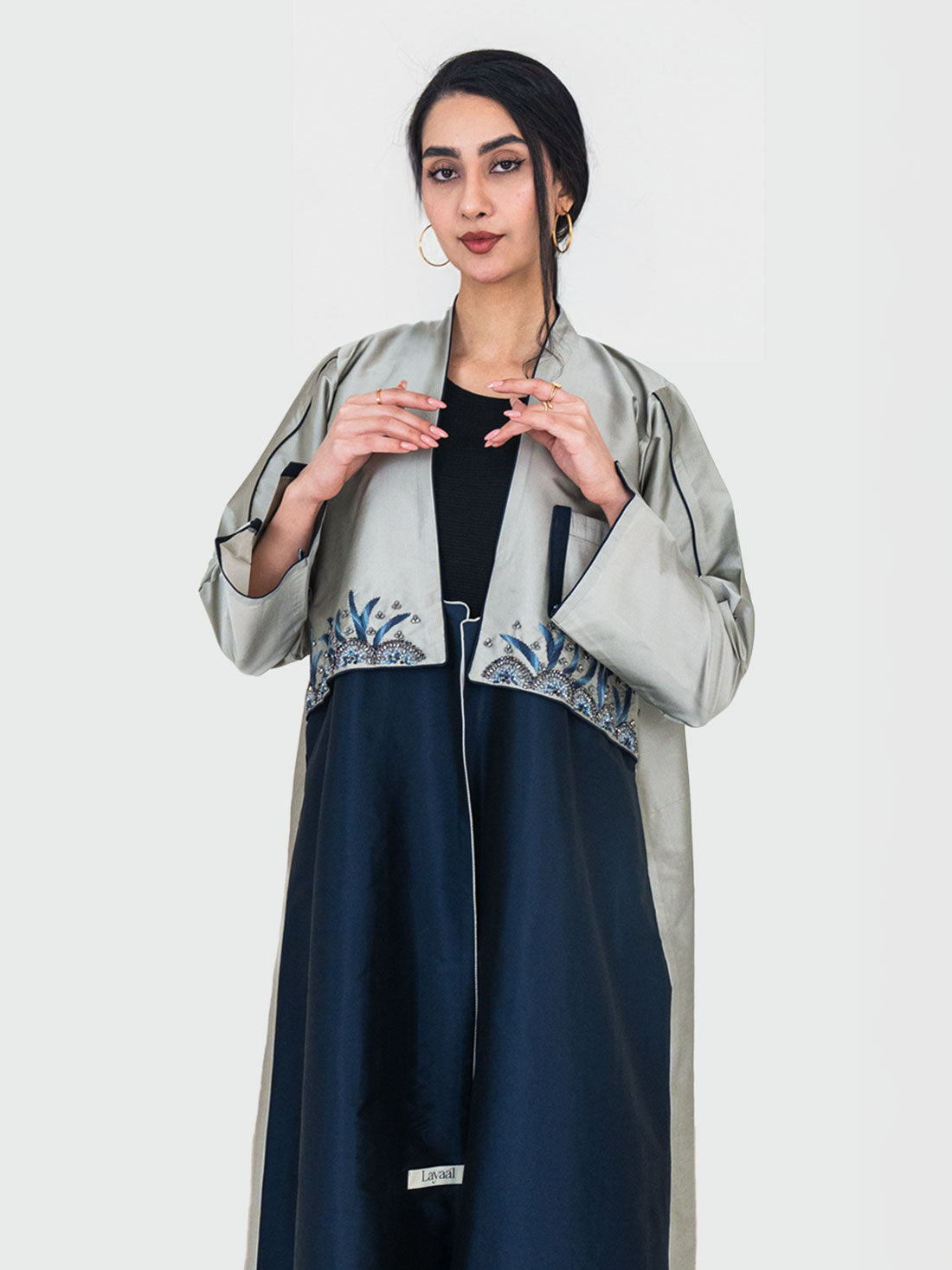 The Celeste Navy Abaya by Layaal is a masterpiece of artisan detail and refined femininity....