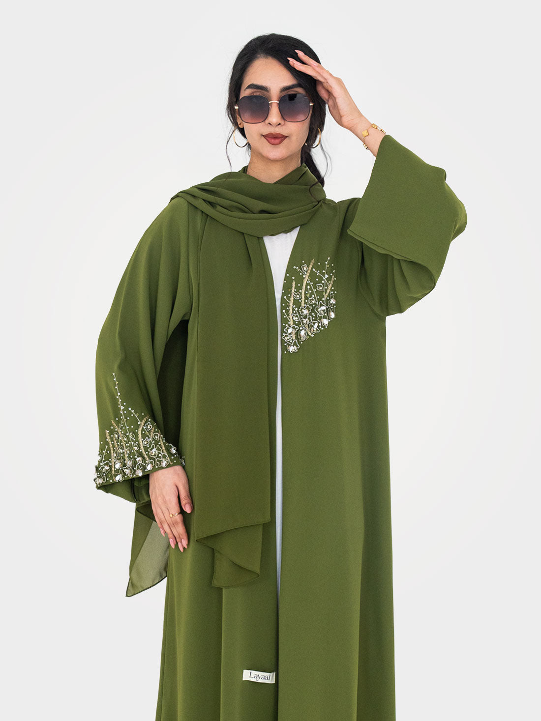 The Olive Blossom Abaya by Layaal is bold, elegant, and effortlessly refined — a statement...
