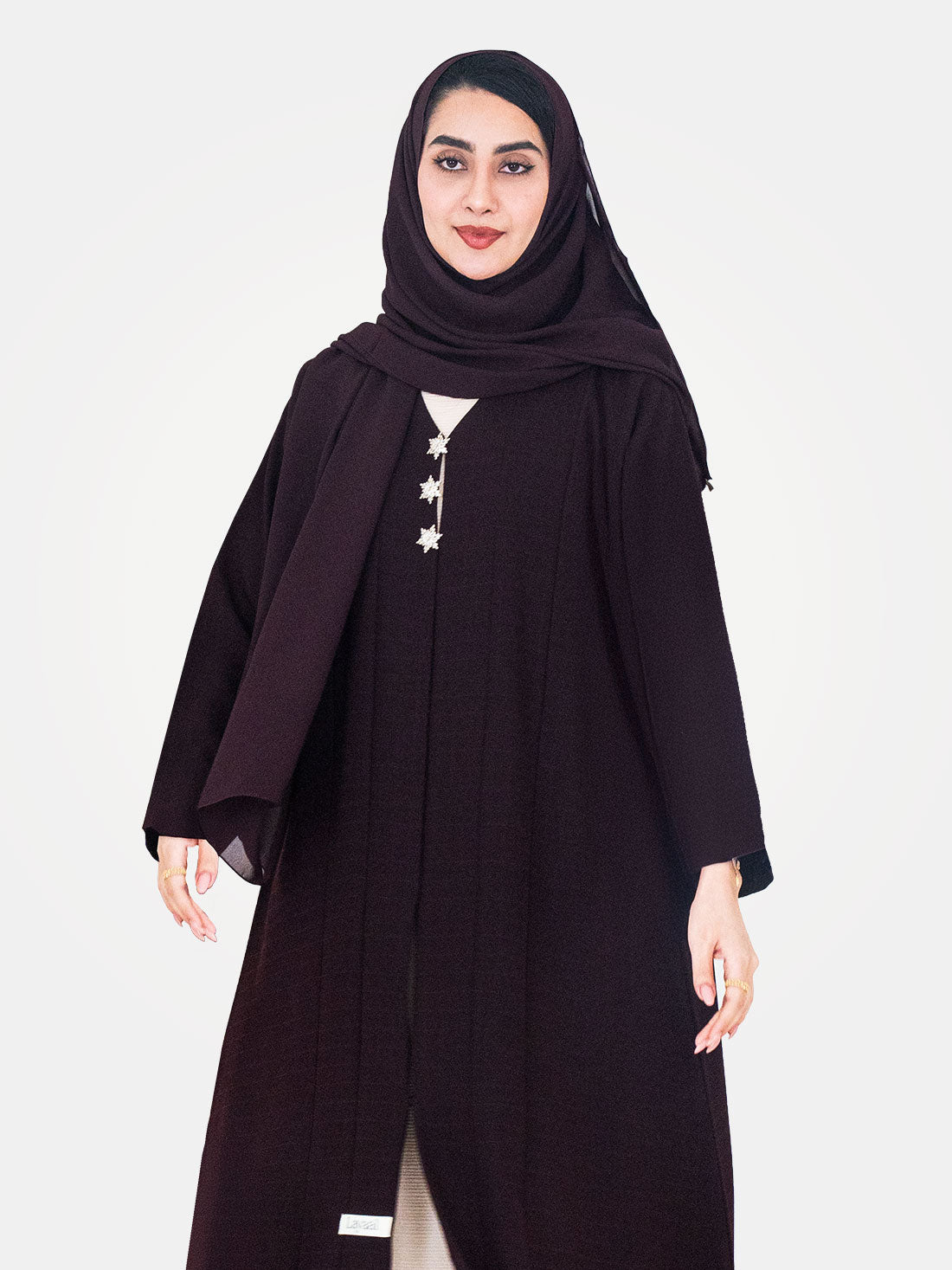 The Burgundy Star Abaya by Layaal embodies regal elegance and timeless sophistication — a deep...