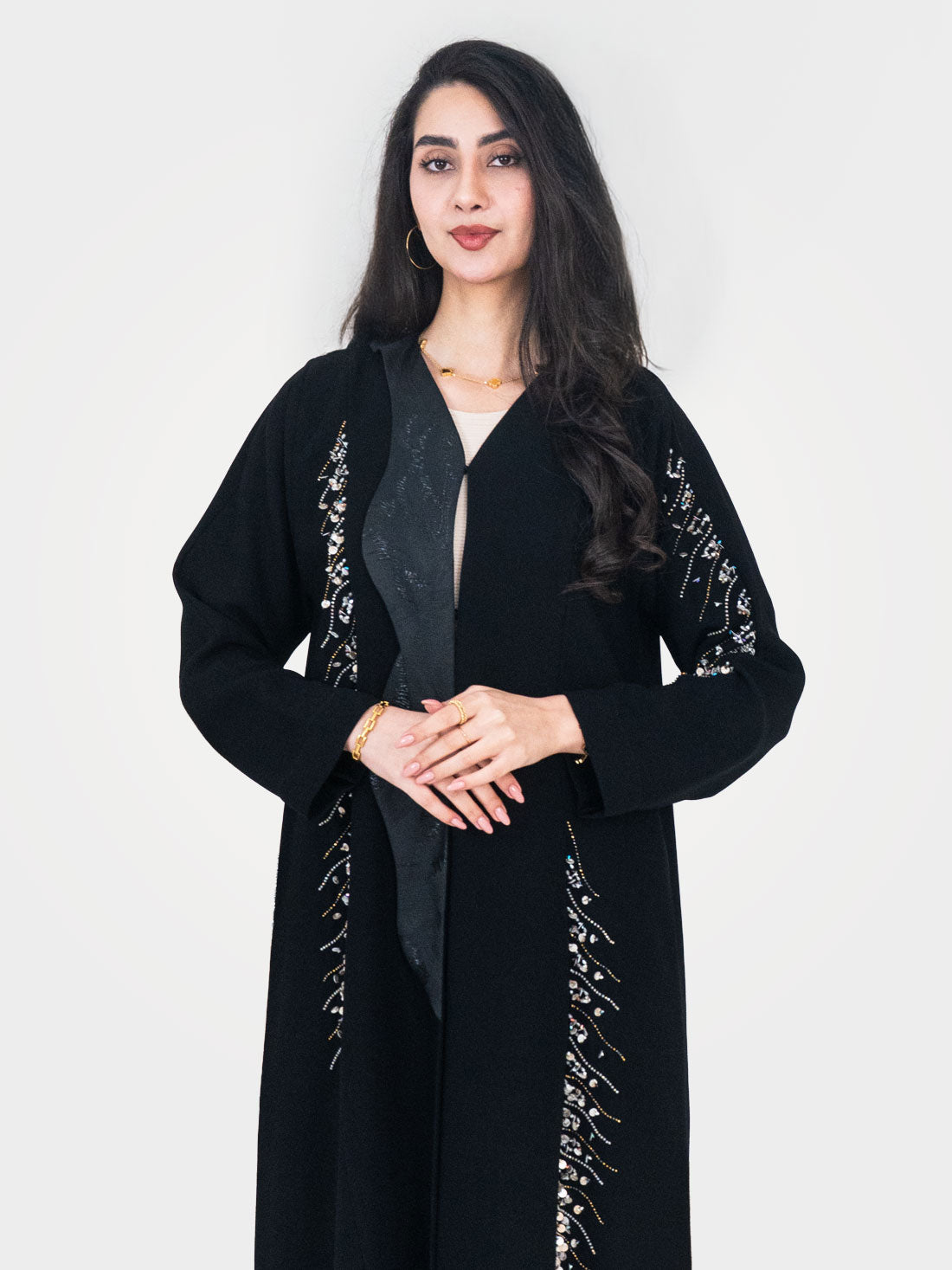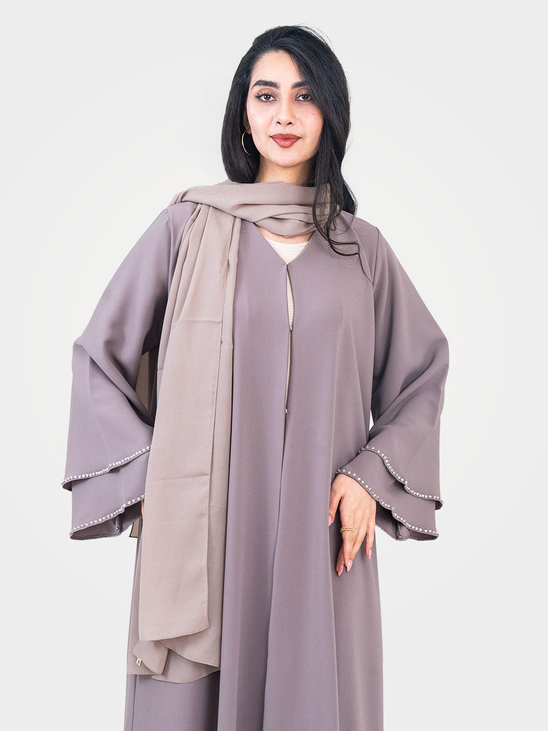 The Cascade Pearl Abaya by Layaal is the definition of effortless luxury — a refined,...