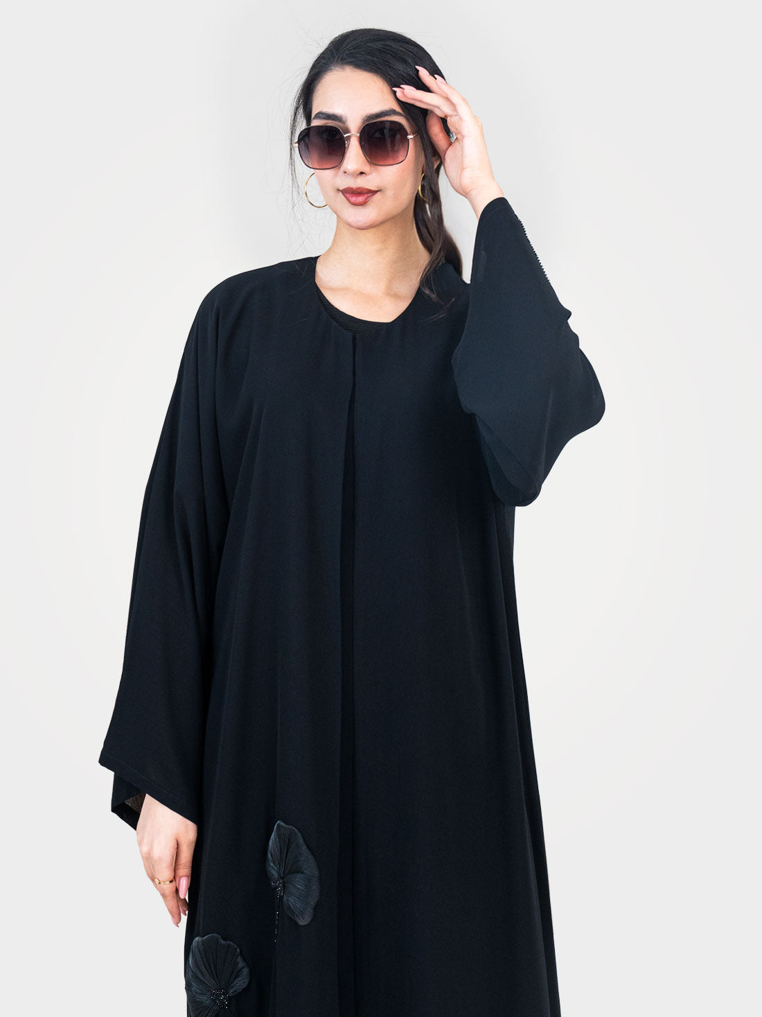 The Noir Blossom Abaya by Layaal is where artisan craftsmanship meets quiet luxury. Crafted from...